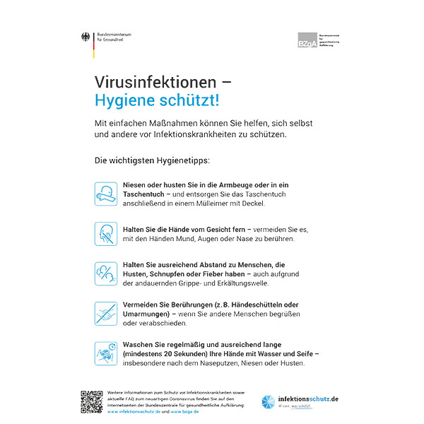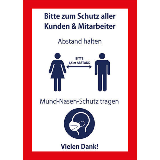 - Aufkleber und Bodenaufkleber (Maskenpflicht, Bitte Abstand halten, Hygieneregeln...)